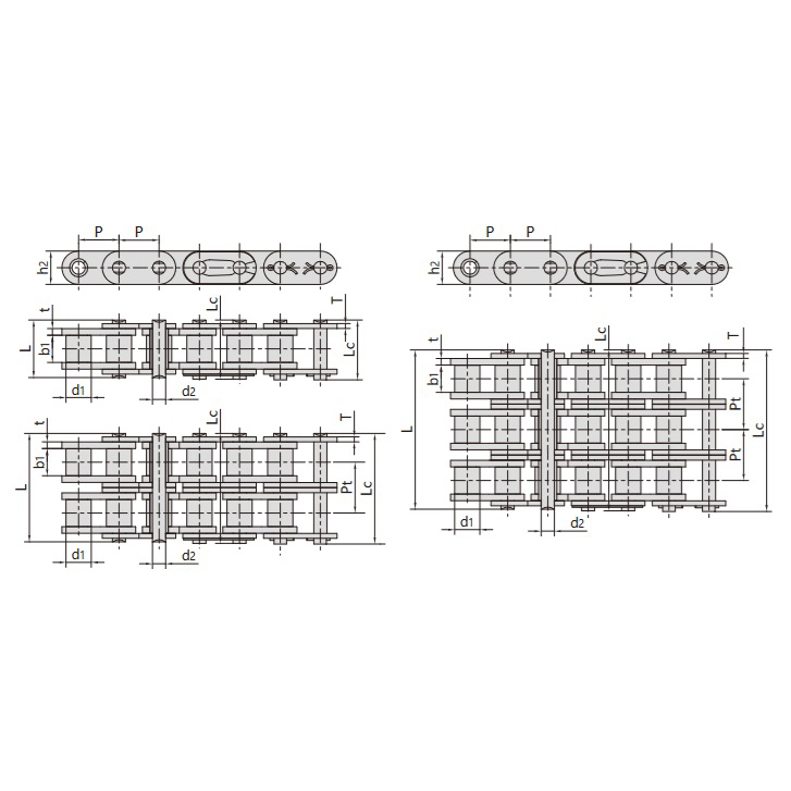 Tabelul tehnic al lanțului cu role din seria B cu plăci laterale drepte