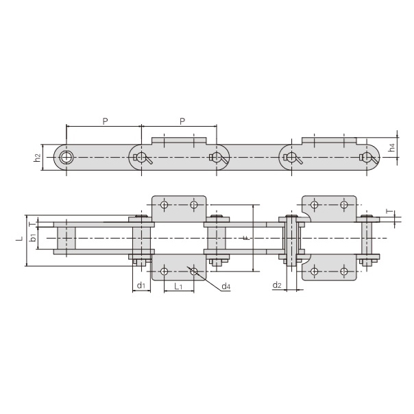 - Plăcile de conectare în formă de L – secțiunea verticală fixată la capătul superior al plăcii interioare a lanțului cu găuri de montare orizontale – îmbunătățesc dispersia sarcinii și previn deformarea sau deteriorarea din cauza forței neuniforme.