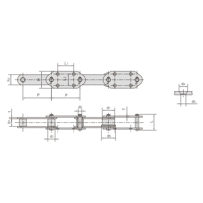 - Stabilitate ridicată:Fiecare rulment este format dintr-un știft și un manșon, permițând rolelor să se rotească fără probleme. Designul articulat permite lanțului să facă față presiunii și impactului ridicat, menținând stabilitatea și transportul fiabil.