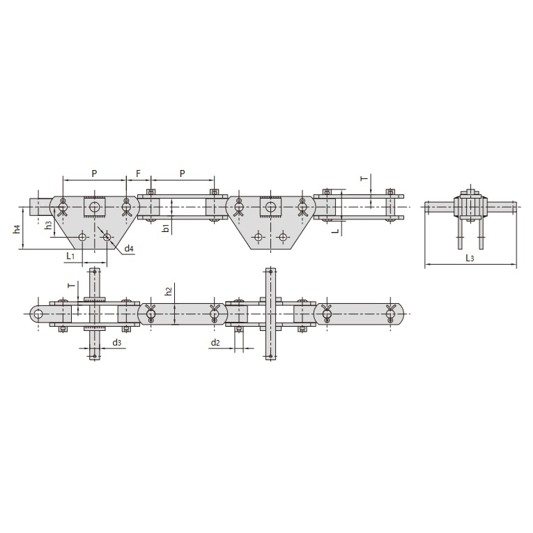 - Pasul lanțului poate fi ajustat după cum este necesar, în funcție de rezistența dinților pinionului și de rigiditatea plăcii lanțului.