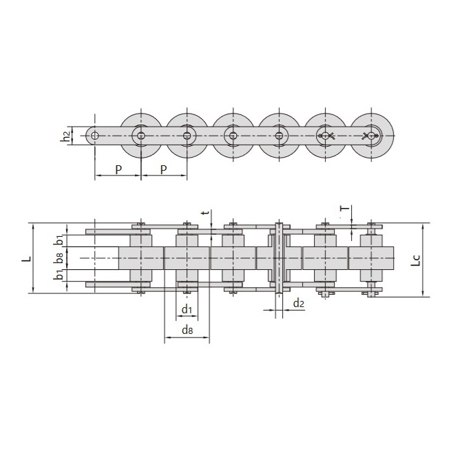 • Caracteristici structurale:Include rolele, plăcile interioare și exterioare ale lanțului, știfturile și manșoanele. Rolele suportă direct greutatea plăcii de lucru și a articolelor transportate, în timp ce rolele de pe șina de ghidare permit contactul prin alunecare, permițând transferul lin al materialelor.
