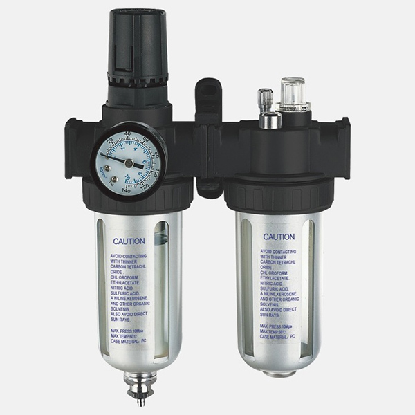 Filtrul de aer, regulatorul de presiune și lubrificatorul 3 în 1 este un dispozitiv combinat comun în sistemele pneumatice care integrează trei funcții: filtrare, reglarea presiunii și lubrifiere. Acesta este utilizat în mod obișnuit în sistemele de aer comprimat care necesită aer curat, reglarea precisă a presiunii și lubrifierea uneltelor sau echipamentelor pneumatice. Această combinație permite proiectarea simplificată a conductelor, îmbunătățirea eficienței sistemului, prelungirea duratei de viață a uneltelor pneumatice și funcționarea stabilă.