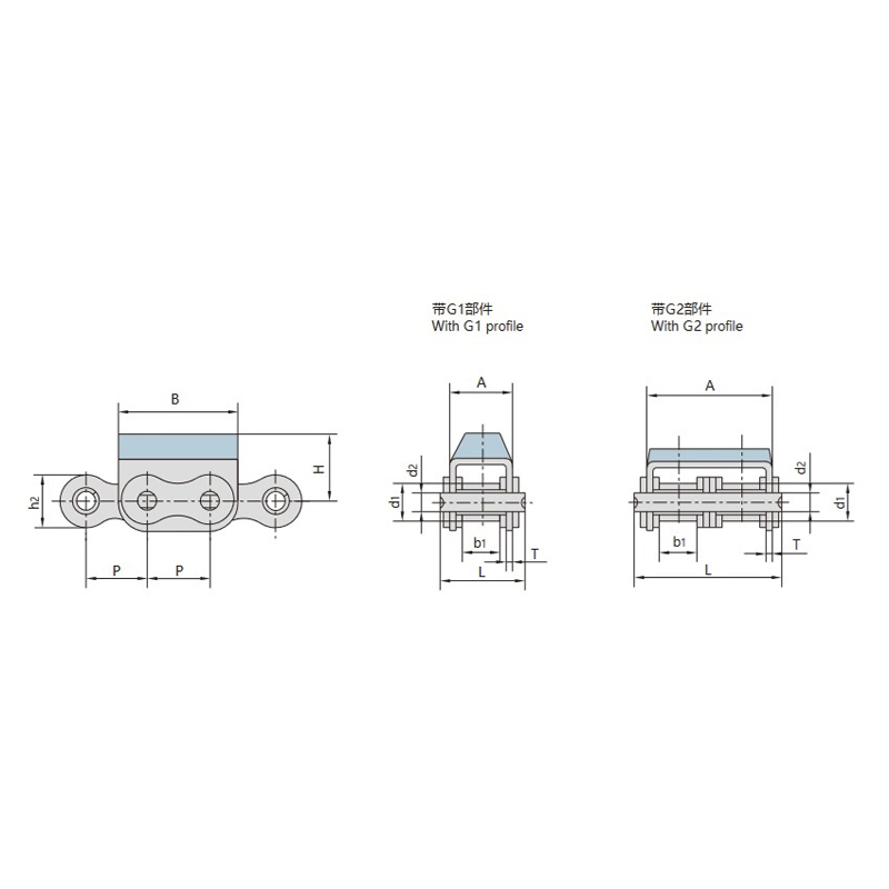 Lanțul de bază al lanțului cu placă atașată din cauciuc este conform cu standardele internaționale precum ISO, ASME, ANSI, DIN și JIS, asigurând o aplicabilitate și o interschimbabilitate largă. Placa superioară din cauciuc este fabricată din materiale de înaltă calitate precum NR, NBR și PUR, oferind elasticitate excelentă și rezistență la abraziune. Placa superioară din cauciuc poate fi proiectată în diferite forme și stări în funcție de cerințele specifice ale aplicației.