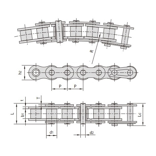 Lanț cu role cu arc lateral din oțel inoxidabileste proiectat de experți pentru utilizarea în medii exigente care necesită o manipulare lină, stabilă și igienică a materialelor. Designul său inovator cu arc lateral, combinat cu o construcție robustă din oțel inoxidabil, asigură o performanță fiabilă în trasee de transport curbate și complexe.